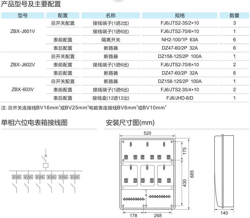 单相六位机械式电表箱(V系列)